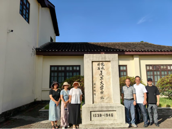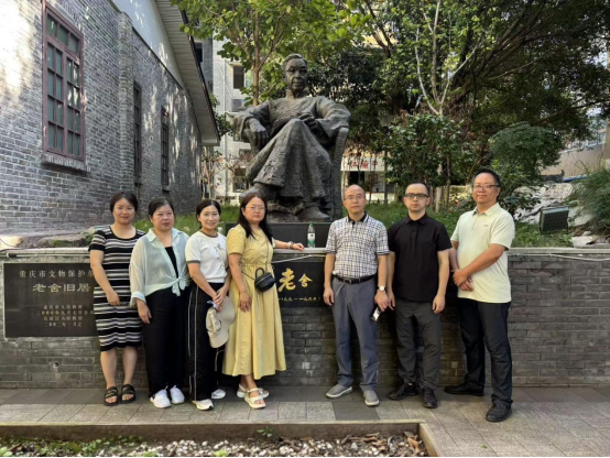 随后,支部一行前往抗战时期复旦大学校址、老舍旧居与梁实秋纪念馆。在复旦校址旧址,斑驳的建筑与史料展板重现了师生们在烽火中坚持办学、弦歌不辍的场景;漫步老舍旧居与梁实秋纪念馆,透过《四世同堂》等经典作品的创作背景,大家体会到文人学者在抗战岁月里,以笔为刃、坚守文化阵地的爱国情怀,感受到“文以载道、以文化人” 的精神力量。